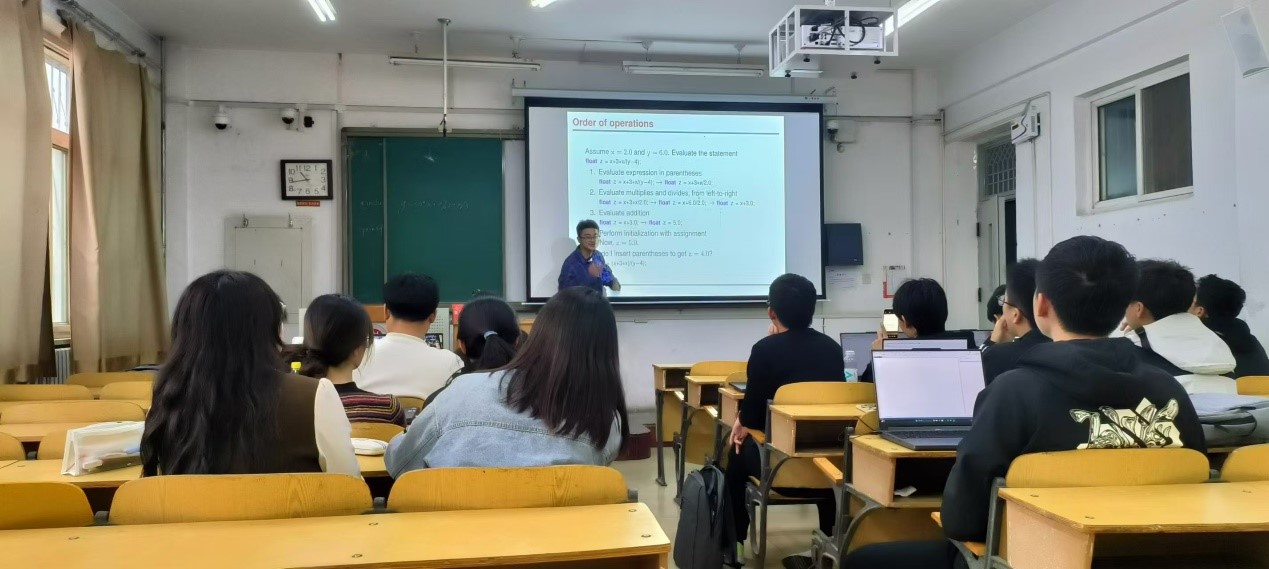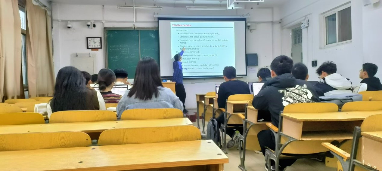 本次培训主要由实验室副主席游逸飞主持,24级的同学们参加了本次科普培训。游逸飞向24级的同学们讲解了C语言的算术运算符和算术表达式、赋值运算符和赋值表达式、逗号运算符和逗号表达式、选择结构程序设计中的关系运算符和关系表达式、逻辑运算符和逻辑表达式以及If语句。在讲解完C语言的相关知识后,游逸飞引领大家写出了一些基本的程序并使之运行。由于第一次利用If语句写代码,大家在课堂上出现了许多问题。于是,游逸飞利用课间休息时间对大家的疑问进行了详细解答。通过当堂辅导,游逸飞帮助大家快速地掌握了本节课的C语言知识,并解决了他们关于C语言知识上的问题,与此同时也激发了大家学习C语言的热情。最后游逸飞在洛谷团队上发布了一些课后测试,并要求大家完成后向自己的组长汇报,由各组组长检查监督作业完成情况,并解决他们在课下遇到的问题,让他们更好地巩固培训所学知识。