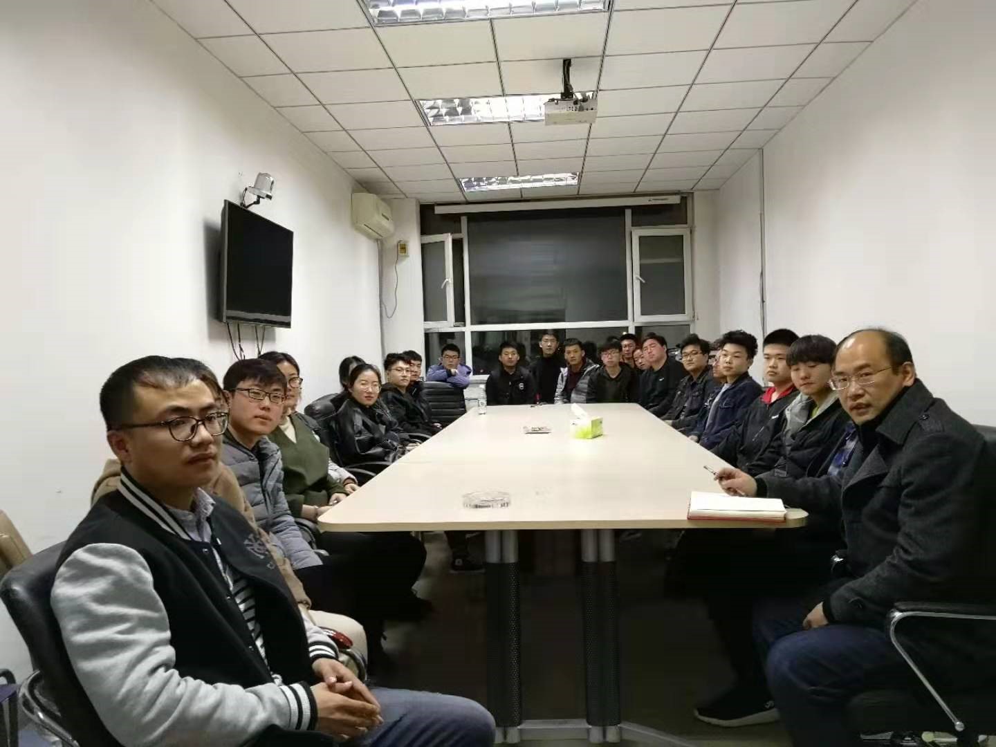 2019年1月7日晚,张彦军导师于14418会议室召集其所负责的大一至大四全体同学共同交流学习生活状况。也是对于2018年的总结以及2019的目标设定展开讨论。