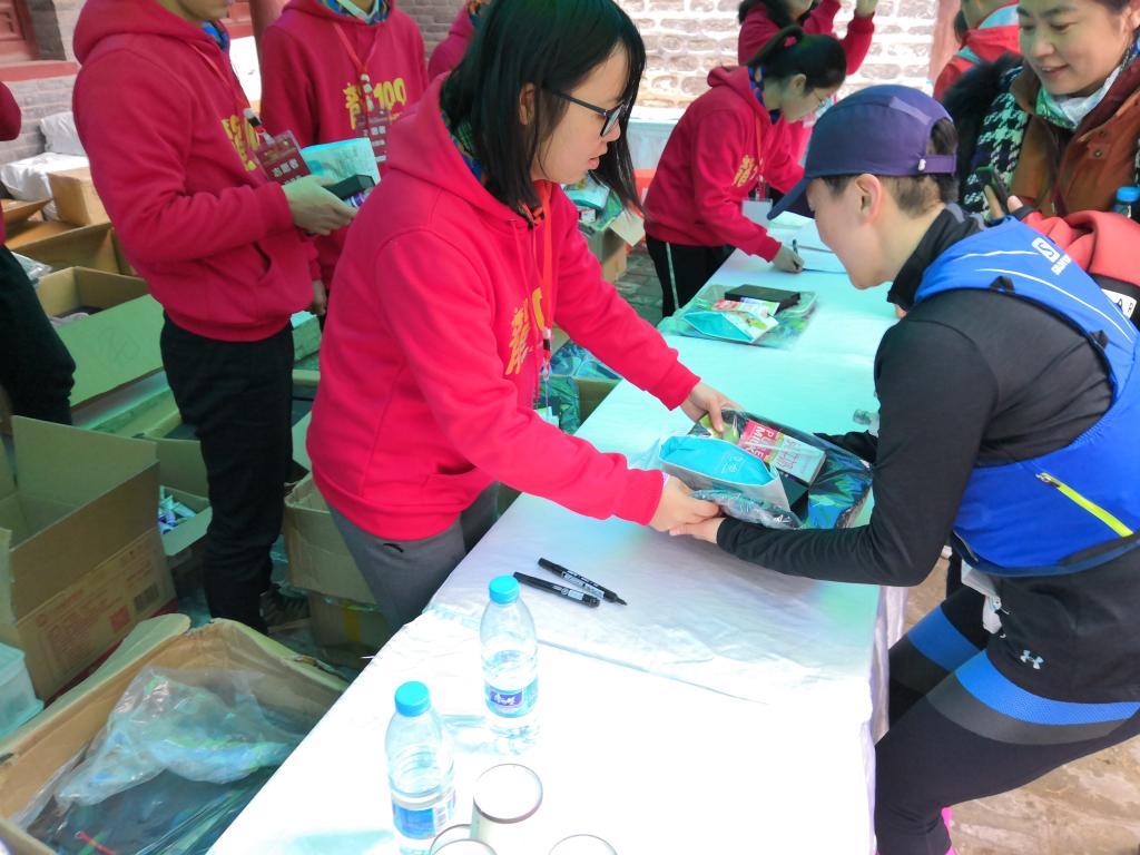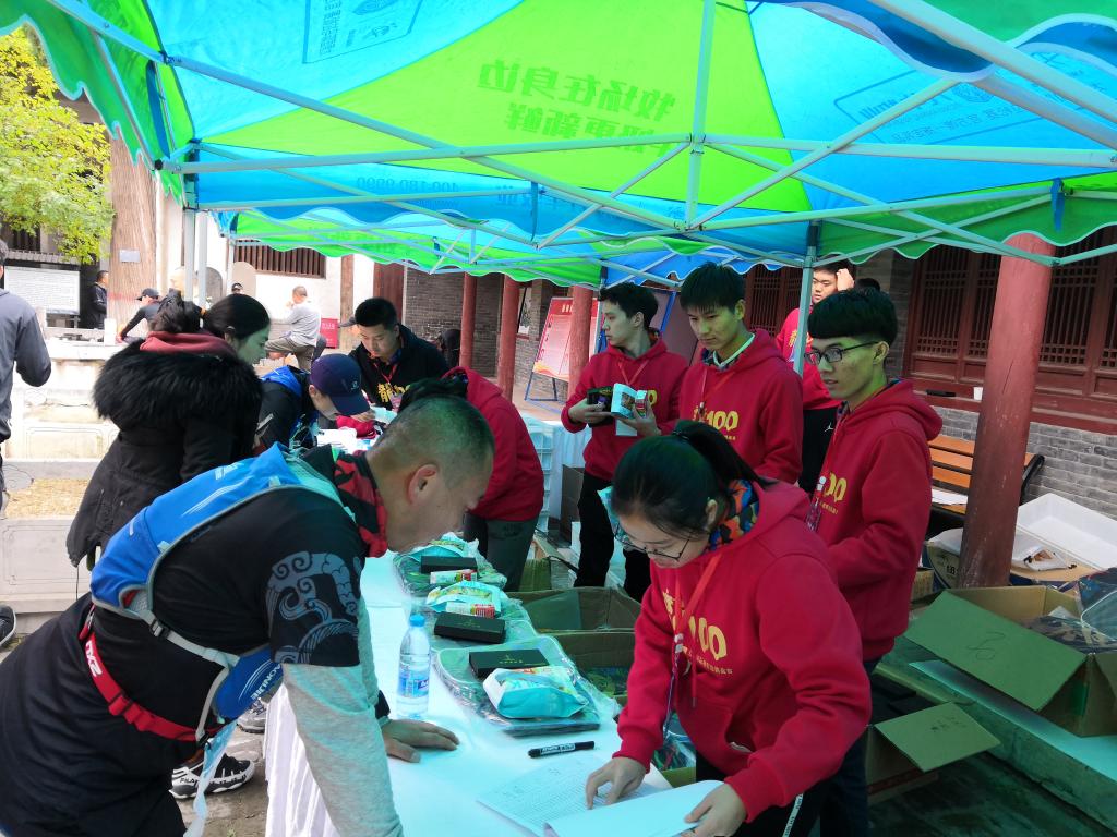 在选手渐渐离开之后,辛苦了一上午的志愿者们终于可以轮班去吃午饭了。贴心的组委会为大家准备了热乎乎的河捞面还有各种小甜品。吃完饭之后,大家就开始为接下来要归来的60KM和100KM选手做准备工作了。虽然我们青志部的成员不负责这些选手的物品发放,但大家还是热心帮助,让志愿工作有条不紊。