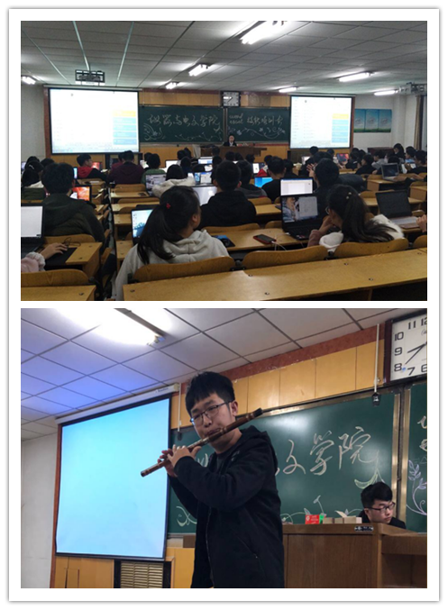 在培训的当天,我们有幸邀请到院民乐团笛子手原昊同学参加,培训会举行到一半时,原昊同学为大家带来精彩的表演,赢得阵阵掌声,不仅活跃了现场气氛,更提高的大家的学习兴趣。