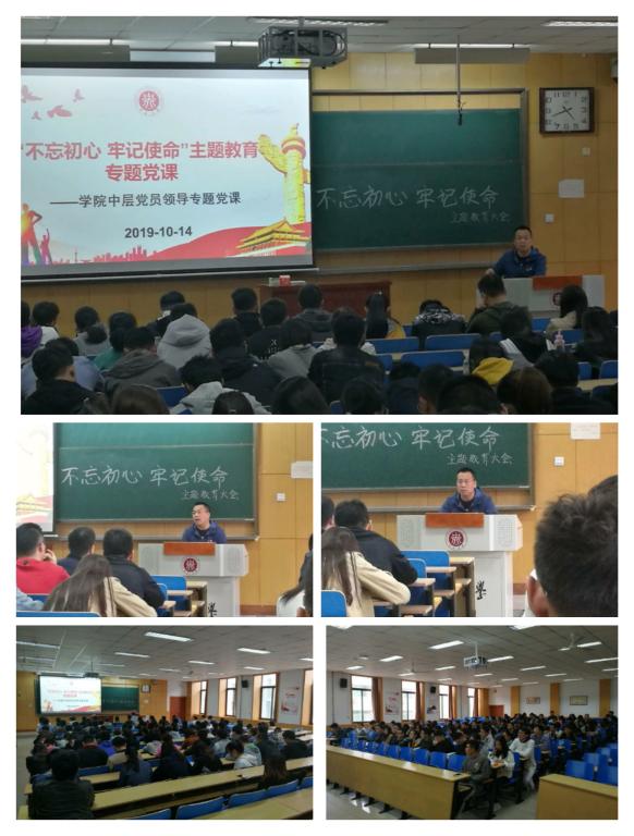 组织院中层党员领导干部结合“三会一课”,在党支部或党小组内讲党课。李杰副院长于2019年10月14号下16时在11309H进行“不忘初心,牢记使命”主题教育党课讲授活动,禁漫天堂
