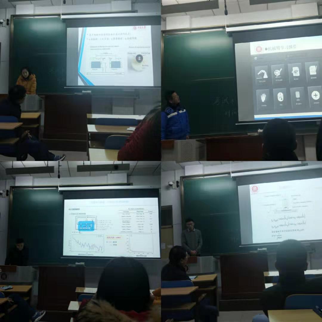 首先是四位短期出国交流学习的研究生将他们在国外学习研究的内容以PPT的形式做了汇报,并且还对其在国外学习和生活中的所见所想进行了讲述。不仅让低年级同学们基本了解了研究生从事的学习工作,更让大家对国外的生活有了基本的了解,对于本科生在今后的学习、成长有一定的启发。