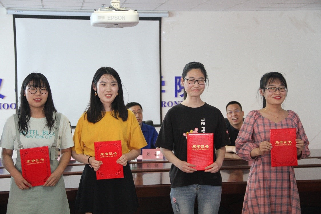副院长唐军宣读了2020届优秀毕业生名单、院党委副书记高宏图宣读2020届毕业生校友联络员名单,主席台领导为获奖、受聘学生颁发荣誉证书与聘书。随后,全国优秀共青团员姚大悦同学作为毕业生代表上台发言,她回顾自己的四年大学生涯,感谢所有老师、家长的悉心教导和精心培养,并代表16级同学与母校约定,决不辜负母校的培养,决不辜负老师的教诲。学院大二大三的同学们也通过视频的方式为即将毕业的学长学姐送来祝福。