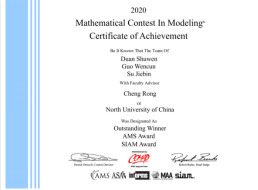 2020年,获“国际大学生数学建模竞赛”特等奖(Outstanding Winner)