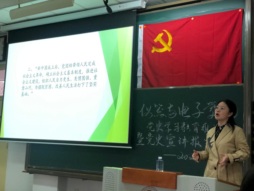 在11506H教室召开了党史学习教育工作推进会,同时邀请校党史宣讲团成员张慧玲老师做第二场党史学习专题报告,学院党员领导干部,100余名师生党员参加了会议。