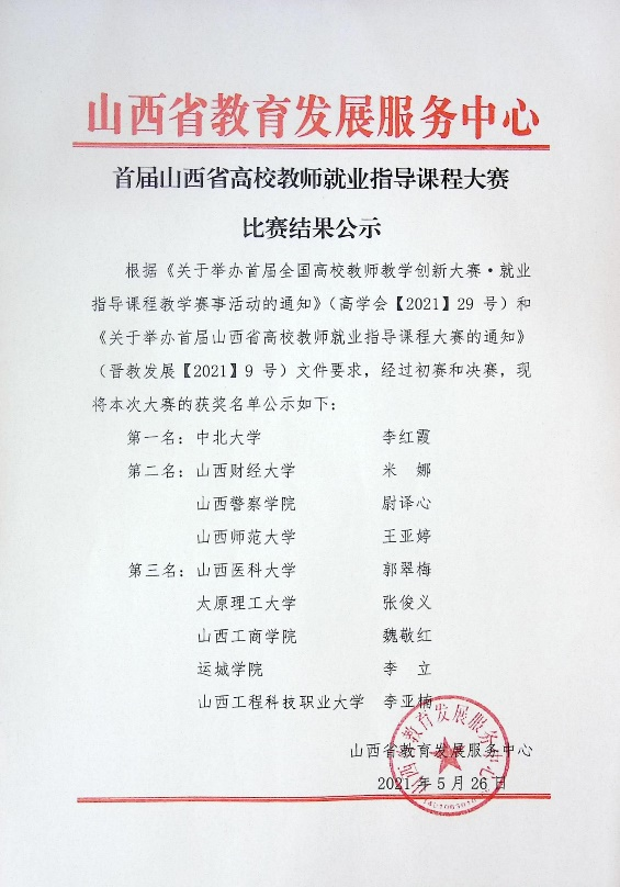 5月26日,山西省教育发展服务中心公布首届山西省高校教师就业指导课程大赛结果,禁漫天堂