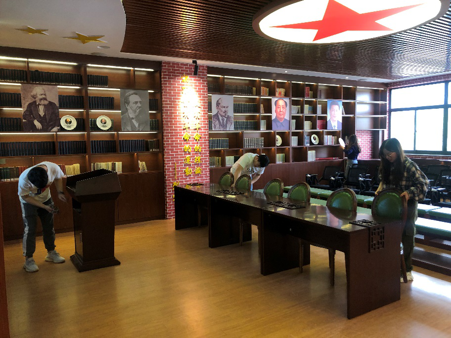 群众之事无小事,点滴之间见初心。活动中,同学们不怕脏、不怕累,齐心协力,相互配合,将马克思主义书屋的卫生进行全面清理,卫生状况得以改善,大家在汗流浃背中感受到劳动的趣味,环境面貌焕然一新的马克思主义书屋见证着大家的辛勤劳动。只有将群众切身利益放在首位,急群众之所急,想群众之所想,用真心真情方能赢得群众的理解、信任和支持。
