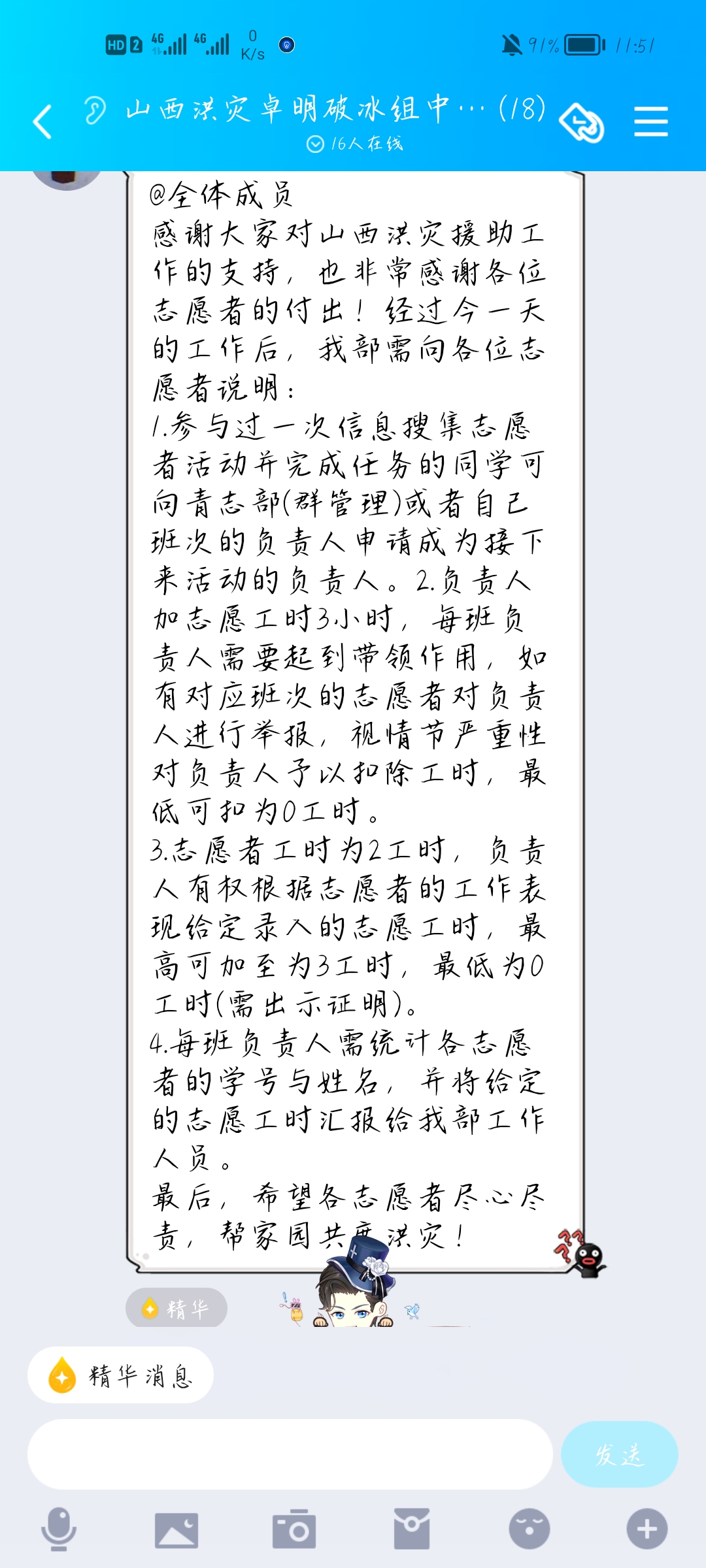 在本次信息收集活动中,破冰组、线索组、搜索组三组合并,以原破冰组为主力全面扩大信息搜索面,志愿者们通过智慧团建等渠道获得乡镇的联系方式,并耐心的与每一位乡镇干部进行沟通,搜索有效的灾情信息,细心排查,准确核实后及时上报。工作期间,志愿者们努力克服因方言而沟通不畅等交流难关,细致严谨,认真负责,确保每一个乡镇的灾情及时得到反馈,为山西的防洪救灾工作贡献出自己的力量。