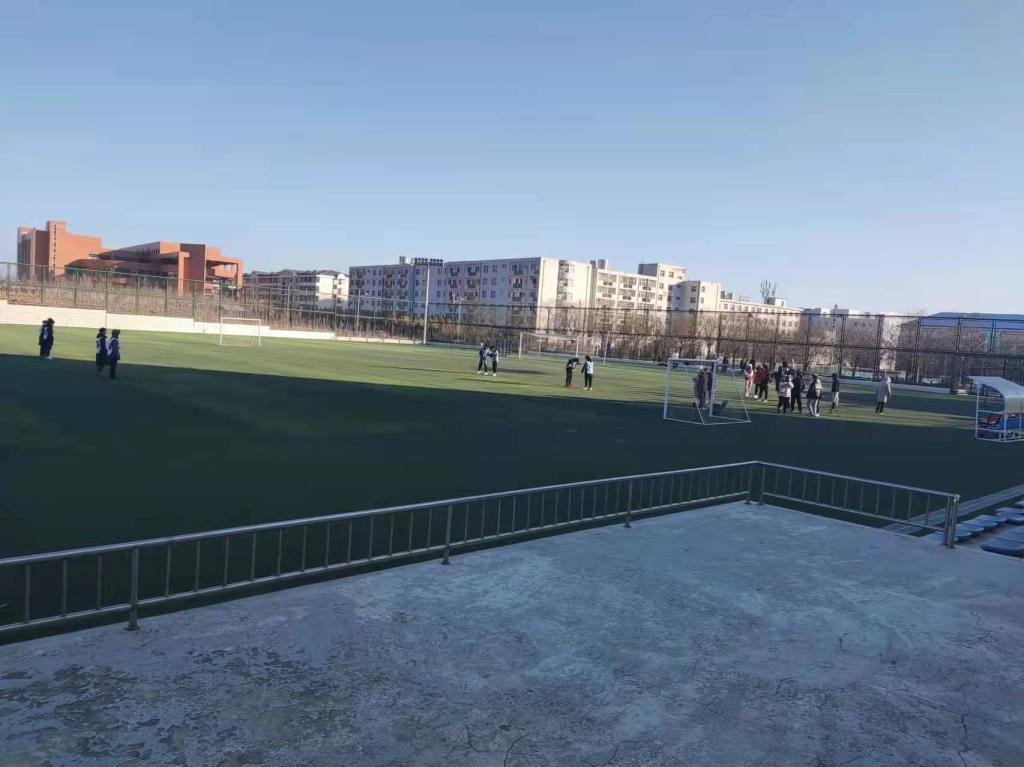 同学们在了解了基础知识后,便开始在老师的带领下佩戴定位手环,穿好号码牌,在终端上登记自己的号码,然后开始在足球场上自由活动起来,终端设备开始记录同学们的运动轨迹。