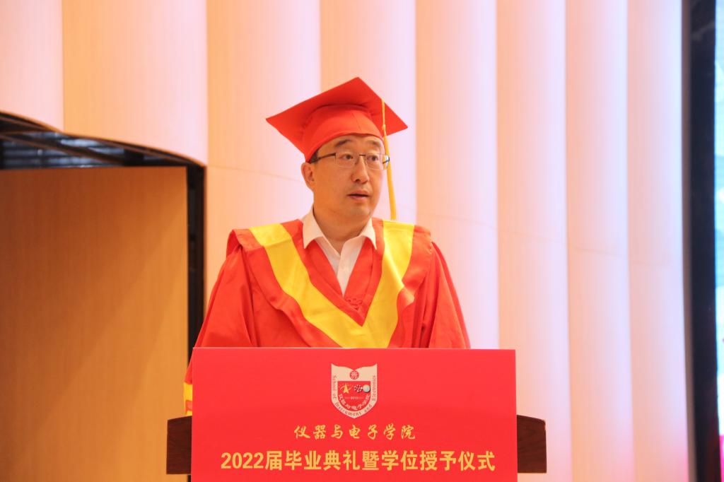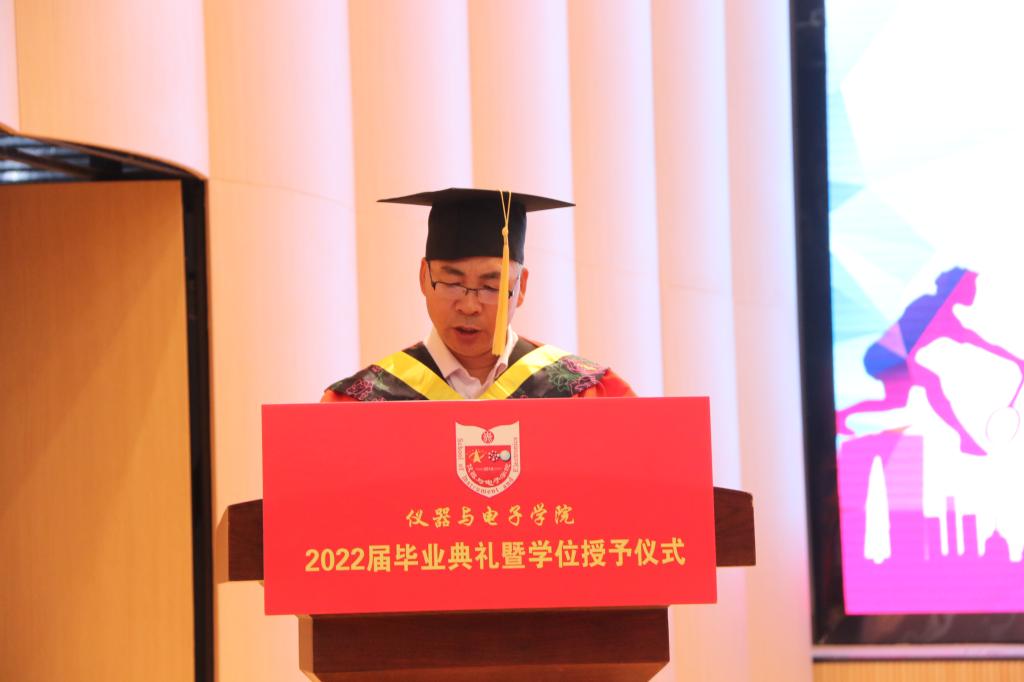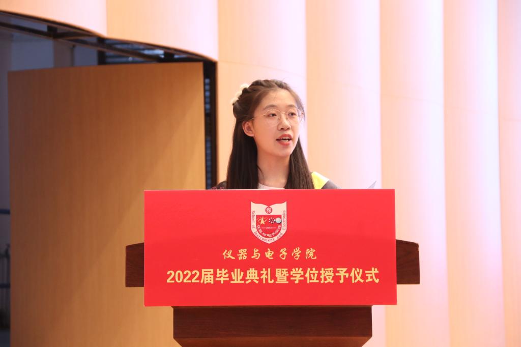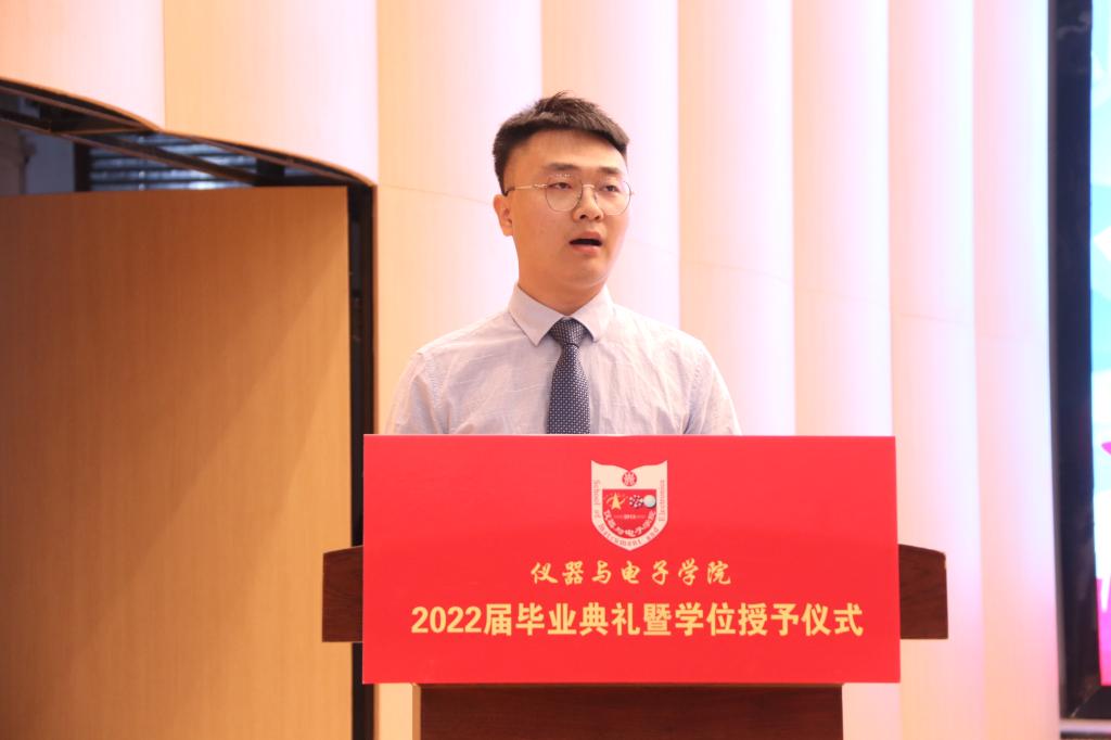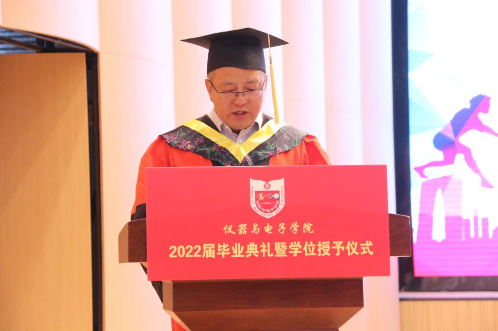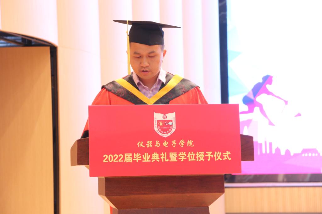 随后,学位委员会委员甄国涌教授、测控技术系主任石云波教授分别宣读优秀毕业生和校友联络员名单,学院副院长唐军宣读学位获得者名单。毕业研究生代表关一浩和毕业本科生代表安琪分别代表毕业生们向学校和辛勤付出的老师们致以诚挚的感谢。