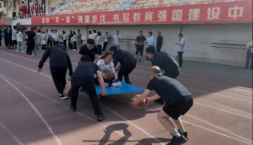趣味活动让操场充满了欢声笑语,教职工们充分展示了体育和团队的精神,为田径场增添了美丽的风景线。