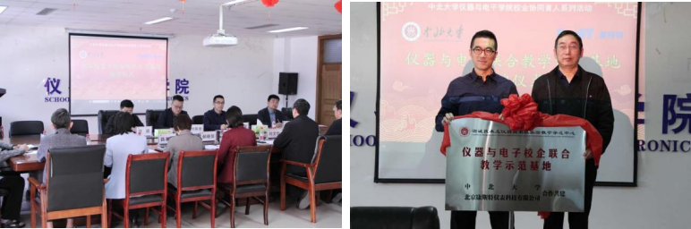 本次揭牌仪式由“仪器与电子校企联合教学示范基地揭牌、教育部协同育人项目立项证书颁发、校企互聘聘书颁发仪式、校企联合共建CNAS实验室启动签约等环节组成。