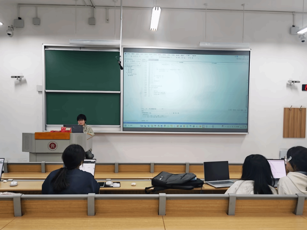 本次培训主要由战队副主席杨启航主持,25级的同学们参加了本次科普培训。先是带领大家复习巩固了一下循环的知识,然后重点讲解了指针的概念与应用,包括指针与变量的关系、指针的声明与使用、指针运算等内容。由于这部分知识较为抽象且难度较大,杨启航在讲解完C语言中指针的相关理论后,便和大家一起编写了一些基础程序并实际运行,帮助同学们通过实践加深对指针的理解。随后,杨启航在洛谷团队上发布了一些课后测试题,要求大家完成后向自己的组长汇报,由各组组长检查监督作业完成情况,并协助解决他们在课下遇到的问题,从而更好地巩固培训所学知识。
