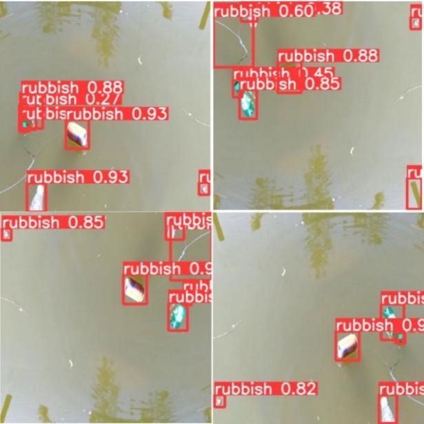 开发了一种基于YOLOv5的深度学习垃圾自动识别算法。利用树莓派采集了1600幅实验图像,结合公共数据集中的湖面垃圾图像2000幅,生成总计3600幅图像的集合。采用YOLOv5网络模型对数据集进行了训练,并将训练好的模型通过NCS2神经棒部署应用在树莓派上,