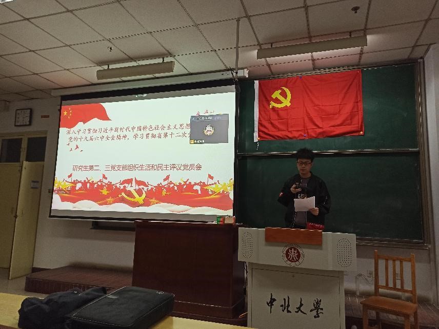 研究生第二党支部组织委员康建洲主持,研究生第二党支部书记杜瑞平书记出席本次会议。