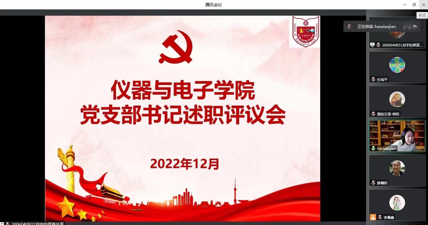 述职结束后,郝晓剑书记充分肯定各党支部一年来的工作成效,同时也对2023年支部工作提出了几点希望与要求:一是进一步学习好、宣传好、贯彻好党的二十大精神,通过思想引领,引导广大师生牢固树立“四个意识”,坚定“四个自信”,做到“两个维护”;二是以创建党建工作标杆院系和样板党支部建设为抓手,坚定不移推进党建工作的“常态化”“系统化”“科学化”“规范化”“实效化”,不断提升组织力、突出政治功能;三是凝心聚力、实干笃行,围绕立德树人根本任务,发挥党组织战斗堡垒作用,带领学院师生踔厉奋发、勇毅前行,以党建引领实现学院高质量发展,为学校创建“双一流”大学的目标要求贡献仪电力量。