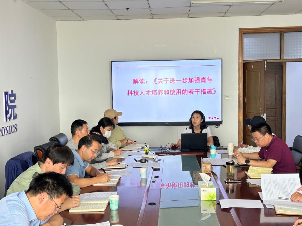 党委书记郝晓剑带领大家共同学习了《关于进一步加强青年科技人才培养和使用的若干措施》。她从出台背景、重要意义、基本考虑、支持青年科技人才成长发展的“硬举措”、支持青年科技人才参与科技决策方面措施以及保证落地实施方法等方面对文件进行了详细解读。她指出,习近平总书记高度重视青年科技人才队伍建设,多次提到青年科技人才在科技创新和科研攻关中的重要地位,这次印发的《关于进一步加强青年科技人才培养和使用的若干措施》,专门针对青年科技人才培养和使用的系统性规划,为打造一支高水平青年科技人才队伍指明了方向。