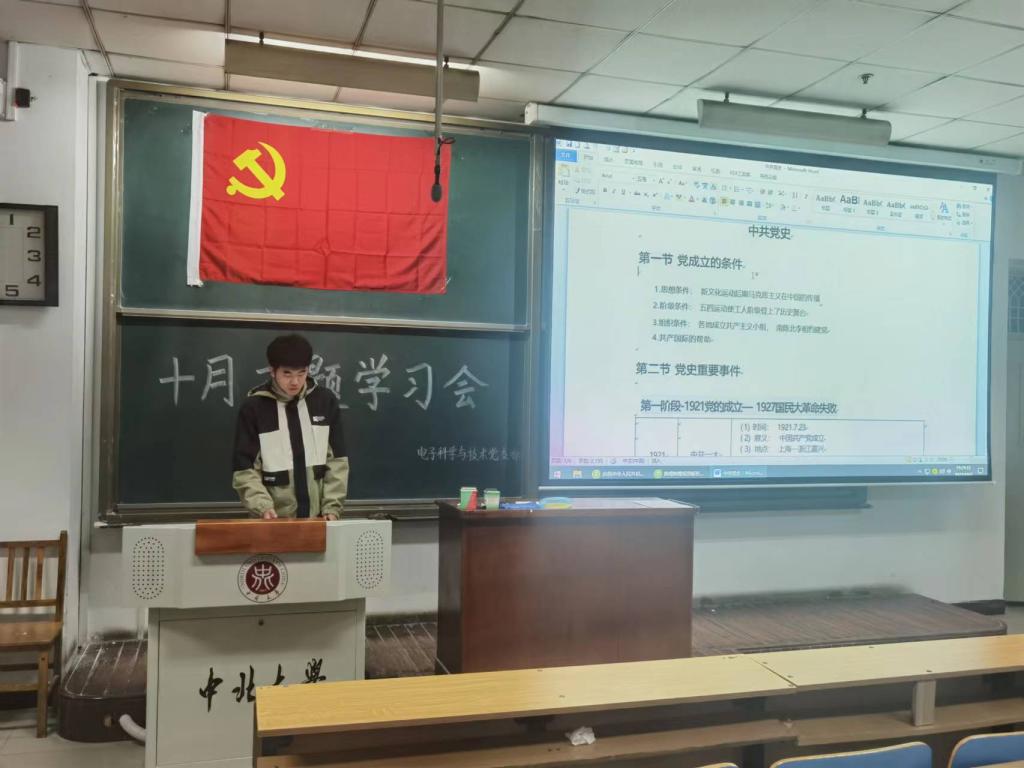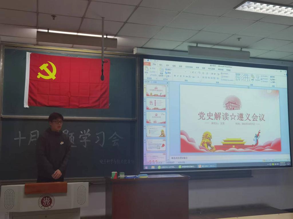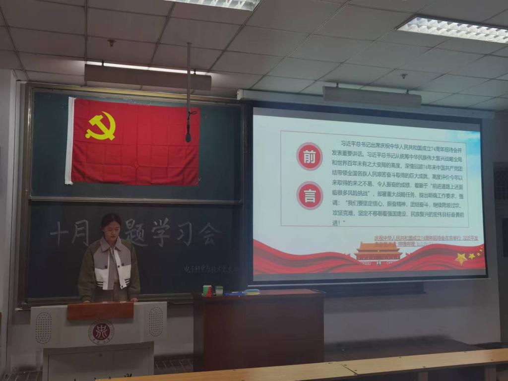 电子科学与技术党支部在11105H教室召开十月理论学习会。支部全体党员、预备党员、发展对象、积极分子参加会议。