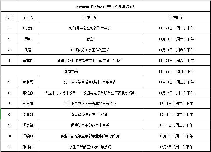 5、本次培训结束后,本次青共校培训将告一段落,参训人员需每人用稿纸手写一份心得,团委、学生会干事及非团委、学生会成员的班长、团支书、组织委员、宣传委员心得字数要求为500字,团委、学生会副部心得字数要求为700字,心得以班级为单位,于11月27日下午5:00交至瑞学楼312团委办公室,心得将是青共校结业证书等级评定的重要参考。