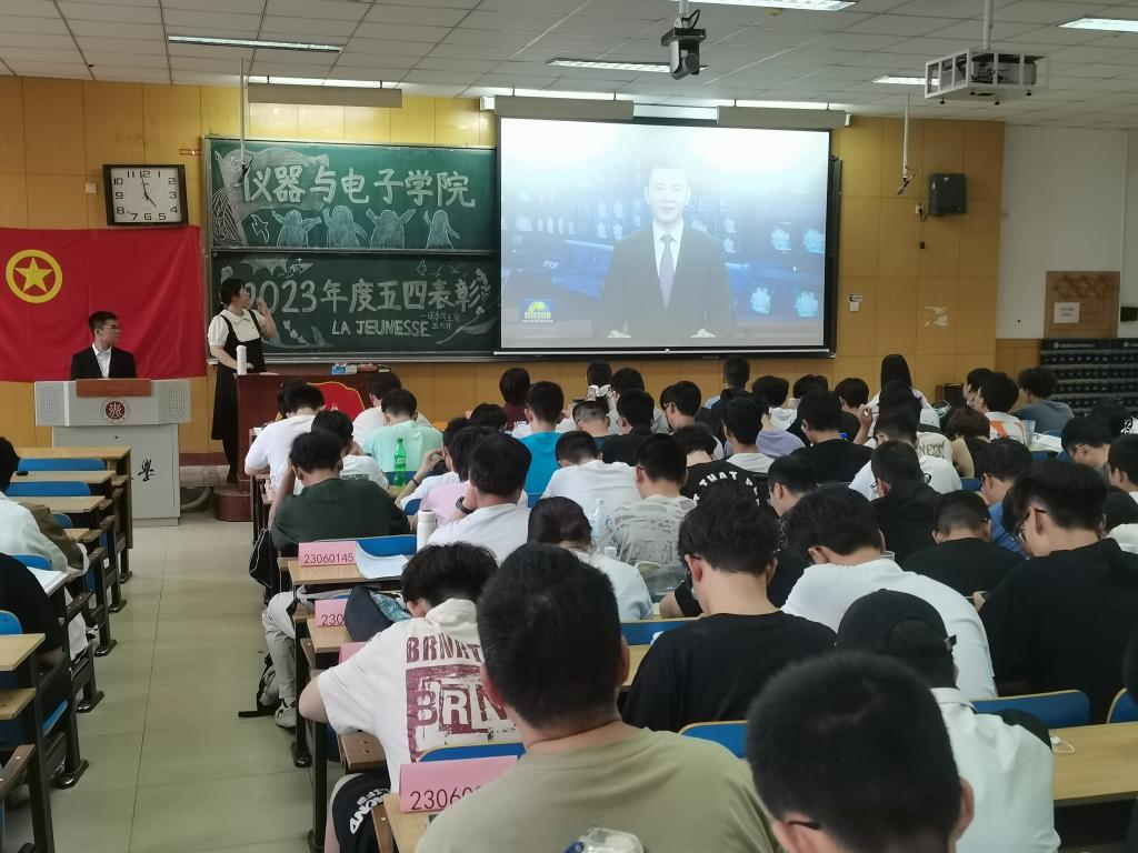 2023年度校级优秀集体和个人的决定》,并为获奖代表颁奖。随后由校园十大青年全能青年谢宏飞同学作事迹分享,谢宏飞同学激情洋溢,一张张荣誉证书、一个个荣誉称号都激励着广大仪电青年不断进取、勇攀高峰!