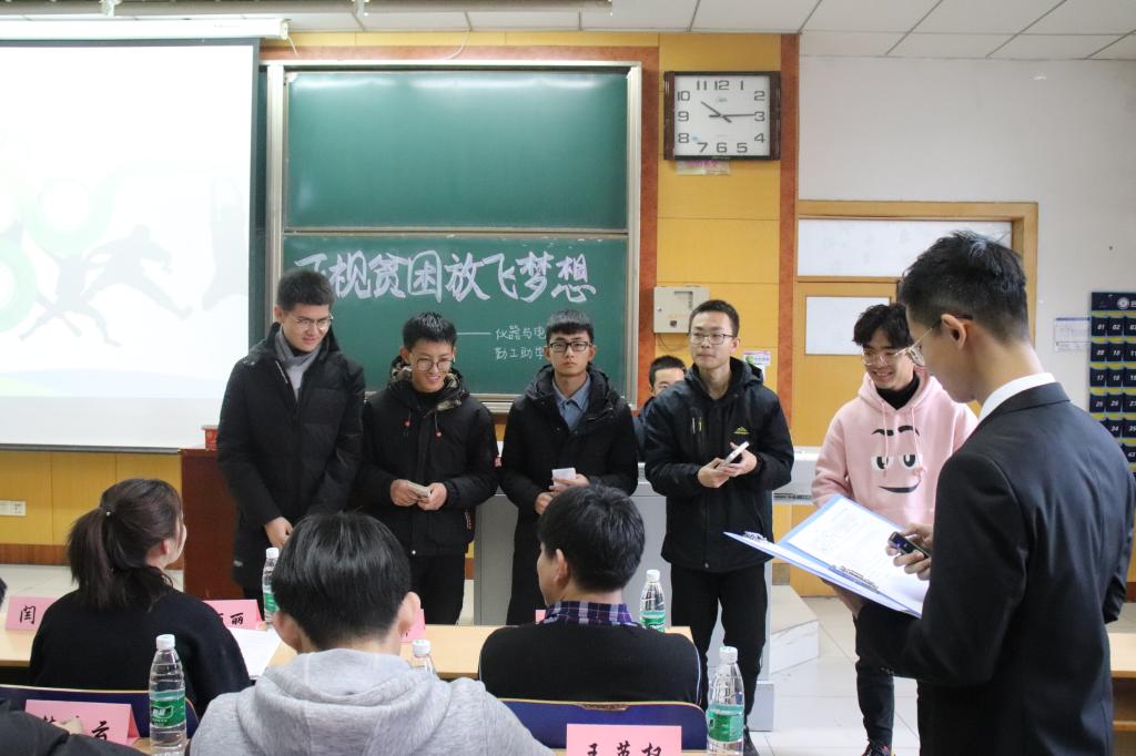 勤工助学励志视频,并通过“你画我猜”的游戏环节在欢笑中普及推广助困工作相关政策知识,讲解临时困难补助及学费减免和应征入伍学生资助内容。随后,闫兵学长和刘松涛学长就如何保研分享了自己的学习经历,鼓励大家从大一就重视学习,积极同老师和同学合作,在各项赛事中锻炼自我。在大会的尾声,学院学生科教师赵玉峰总结了助困工作及其意义,同时鼓励学生不忘初心,努力学习以此回报社会,并对大会做出总结。