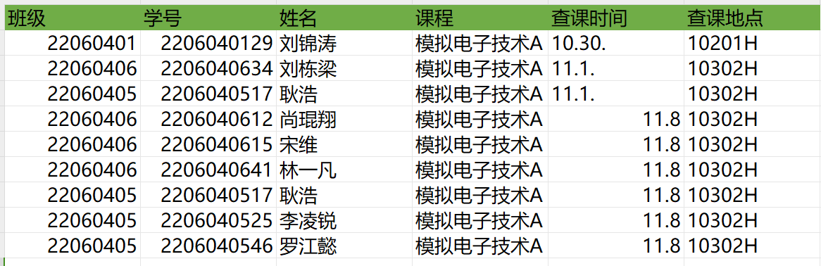 2、请各班班长在查课统计时,认真核实本班情况!一旦确认就视为承认本次查课结果,一切责任由班长负责,若各班因班长未留下来核实而出现误报,责任将由各班班长承担,学风建设部概不负责;本周被误报者请找各班主任反馈给学风建设部相关人员更正。