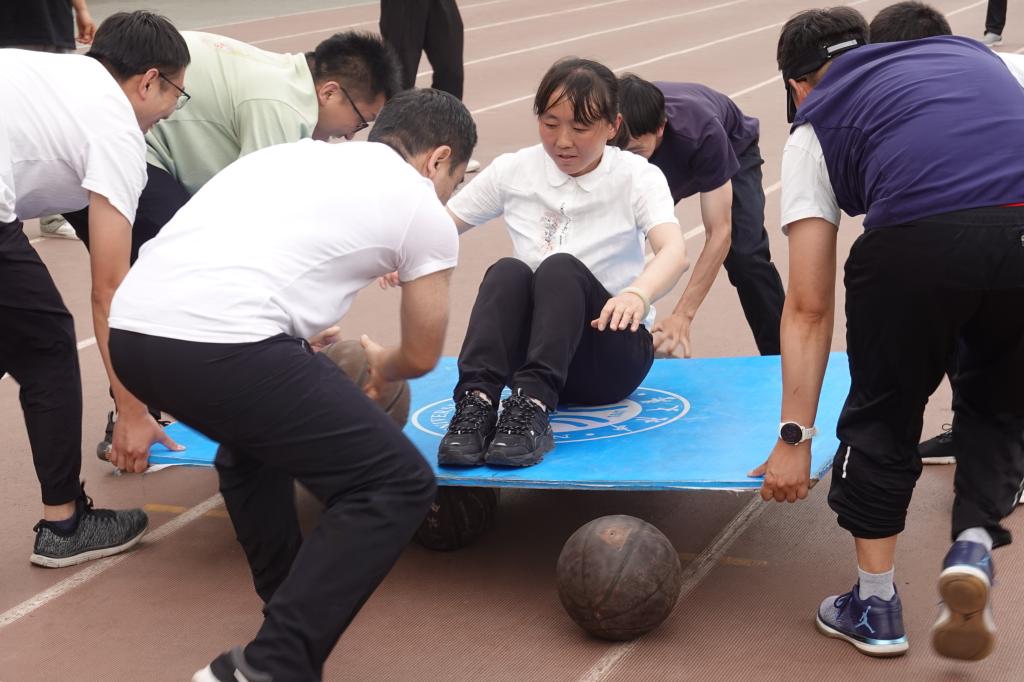 滚铁环接力,财源滚滚,同舟共济,鹊桥相会,袋鼠搬家,赶“猪”跑,金箸夹球。趣味项目让操场回荡着欢声笑语,教职工们充分展现了体育精神和团队精神,为田径场留下来一道靓丽的风景。