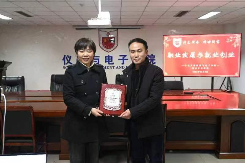 在场的同学们也纷纷围绕大学期间的成长、考研和就业的选择以及如何增强就业和创业的本领和能力与邱健校友进行了互动交流。当拿着母校颁发的“校友讲师团特聘讲师”的聘书时,在场的师生共同见证了校友也能走向大学的讲台,共同担负起薪火相传的育人神圣使命。